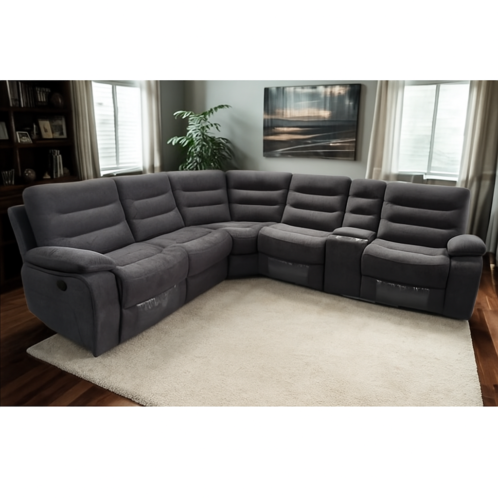 LINCOLN Modular Corner Manual Recliner Sofa Water Resistant Fabric Dark Grey
