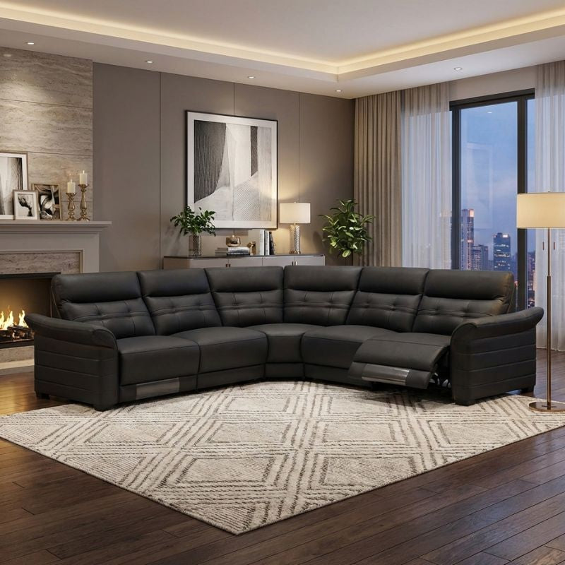 DALLAS with Console Modular Corner Electric Recliner Sofa Genuine Leather Black