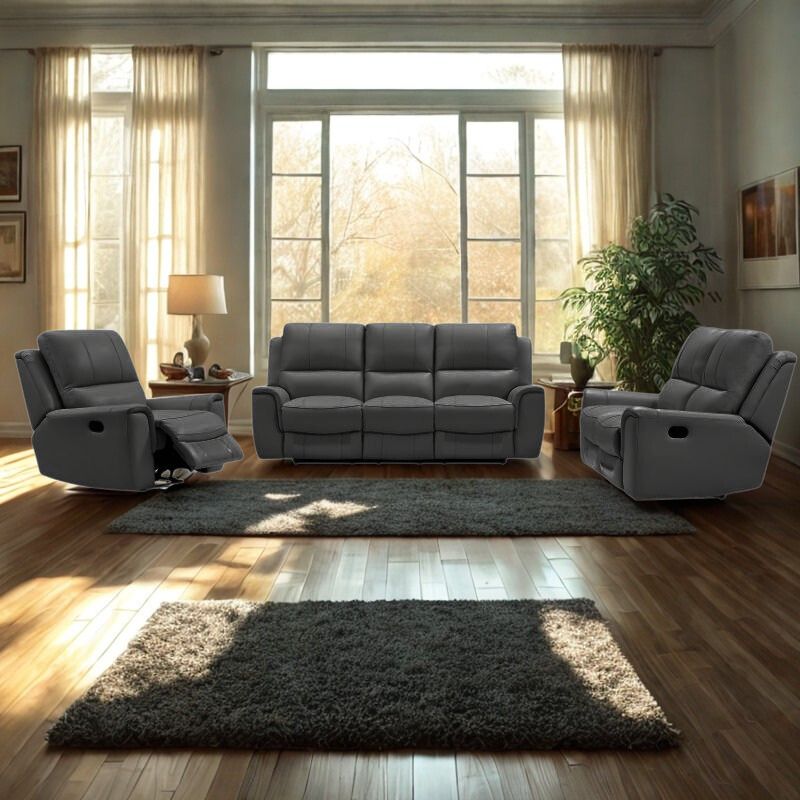 PRE ORDER & SAVE Boston Genuine Leather Manual Recliner Sofa Set Gray