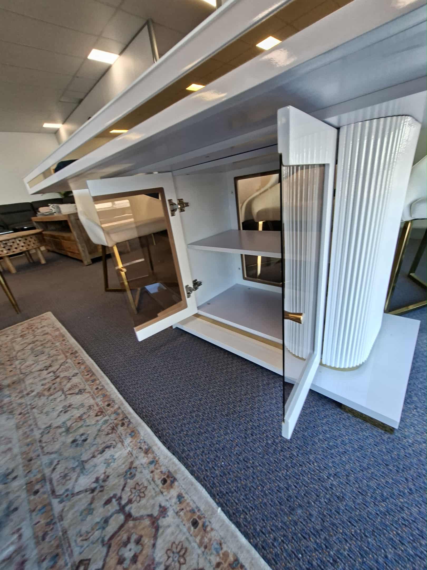 The Asta White & Gold Tempered Glass Dining Table is an exquisite and luxurious dining table which combines elegance and functionality. With its stunning design and premium materials, this dining table is sure to enhance the beauty of any dining space.