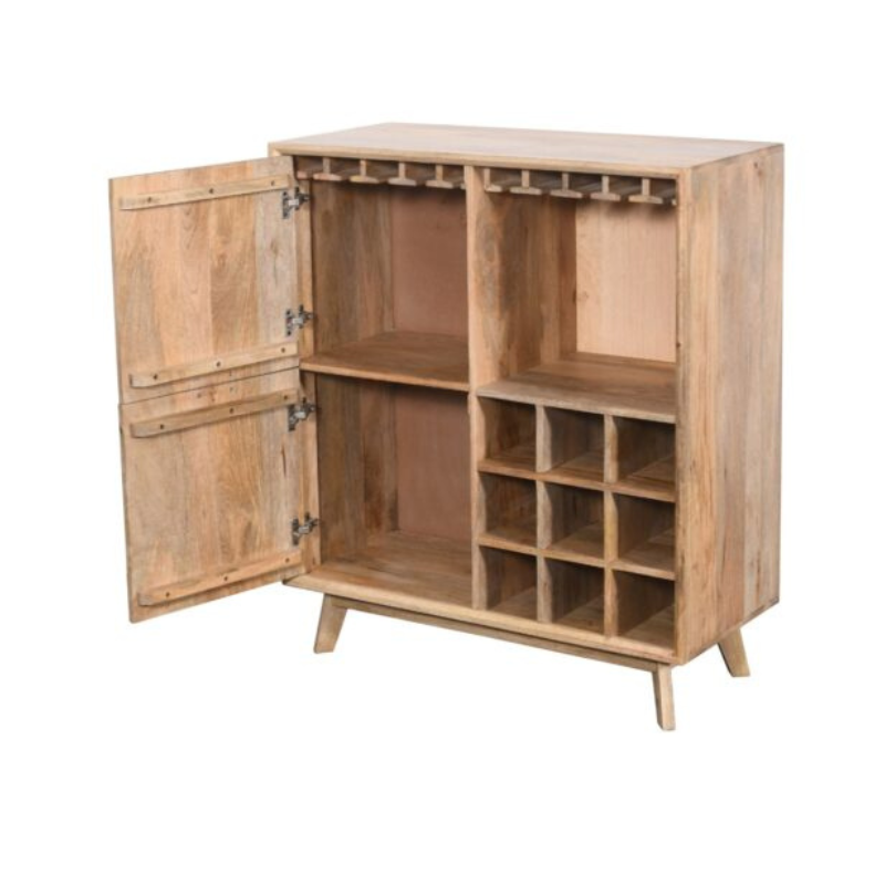 The 2 Door Bar Cabinet is crafted from mango wood and offers a sophisticated storage solution for beverages and barware. Its spacious interior and compartments ensure durability and add natural elegance to any space.