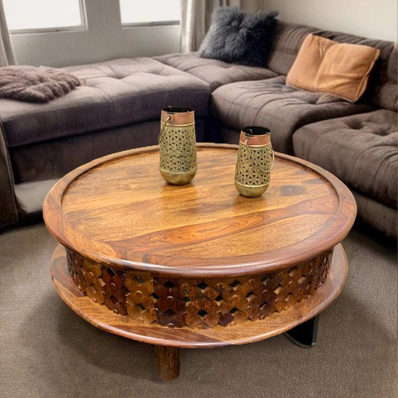 Bring the warmth and authenticity of natural timber into your home with the Isha Round Coffee Table. This piece is individually handcrafted from legally sourced, solid Sheesham wood, making it a unique and sustainable addition to your living space.