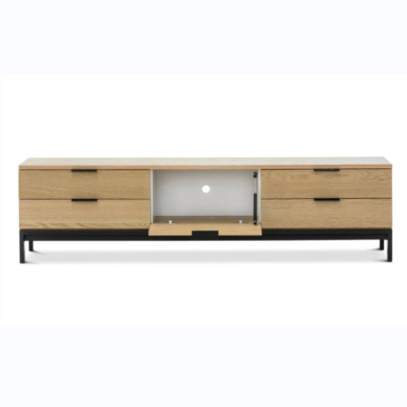 The entertainment unit transforms your television into a central hub for streaming, sharing, and personalized content management—all easily accessible at your fingertips. Crafted to enhance and harmonize with modern living spaces, this unit boasts a sleek minimalist design, accentuated by two steel frame.