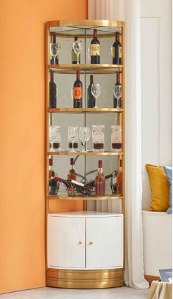 Elevate your entertaining space with this stunning, high-glamour corner bar or display cabinet. Designed to maximize corner space, this piece is ideal for showcasing fine liquor, glassware, or decorative collections.